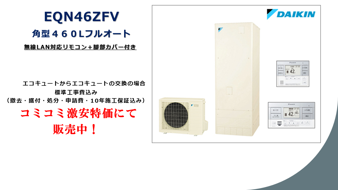 エコキュートは、貯湯タンクユニットとヒートポンプユニットから構成され、ヒートポンプユニットで貯湯タンクユニット内の水をお湯に沸かし(熱交換して)再び貯湯タンクユニットへもどしています。貯湯タンクに戻ったお湯は水と混ざることがなく、上部にたまっていきます。 たまったお湯は、電気によって保温されているのではなく、断熱材によってポットのように保温しています。 室内でお湯を使うと貯湯ユニット下部から水が自動的に給水されて、お湯を押し上げて給湯します。 エコキュートでは、電気はお湯を沸かすためや給湯するためではなく、熱(冷媒)を移動させるために使われています。エコキュートで使われるエネルギー(電気)と生み出されるエネルギー(熱)を比べると、なんと熱エネルギーは使った電気エネルギーの3倍以上!そのため、エコキュートは非常に効率の良い省エネ機器と言われているのです。